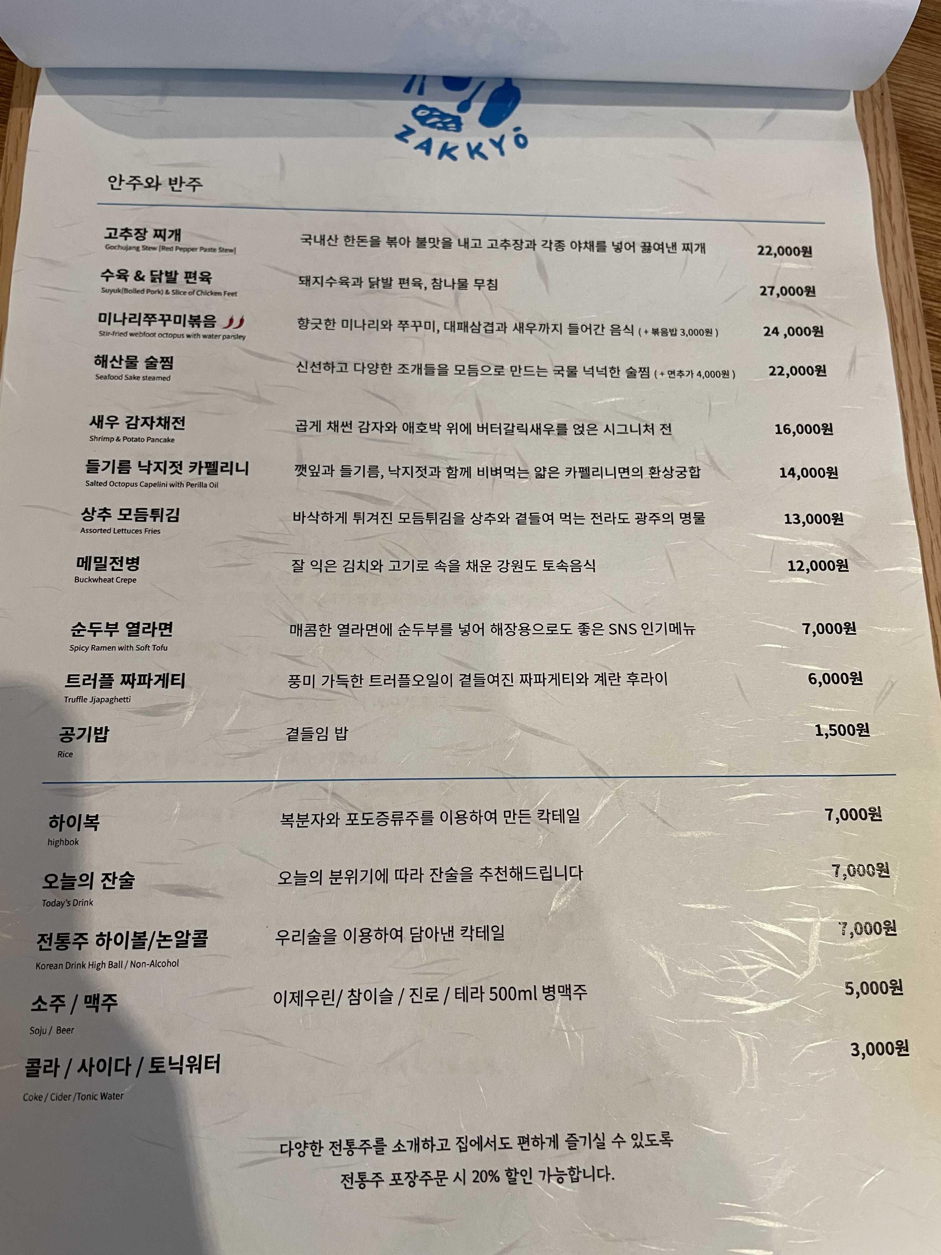 이거는 안주메뉴고 술은 종류가 너무 다양해서