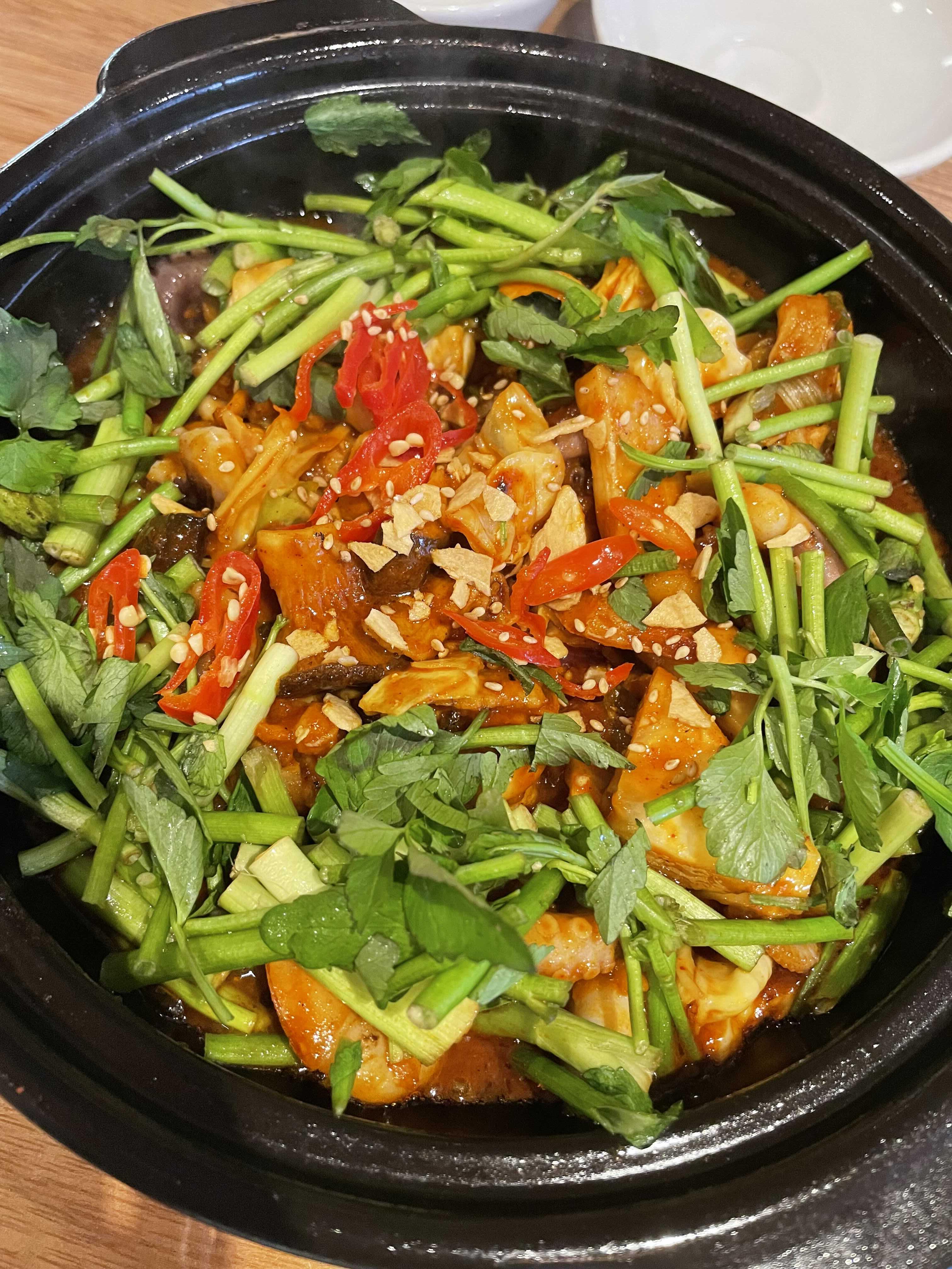 우리는 안주로 미나리쭈꾸미볶음을 시켰다